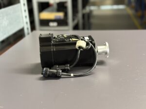 Im Rahmen der Reparatur wurde der komplette Encoder fachgerecht demontiert und durch einen neuen originalen Encoder UTSAH-B17BE ersetzt. Zusätzlich erfolgte eine gründliche Innenreinigung des Motors, eine Sicht- und Isolationsprüfung der Wicklung sowie eine Überholung der mechanischen Komponenten wie Kugellager und Dichtungen. Nach dem Zusammenbau wurde der Motor erneut auf dem Teststand betrieben und über einen längeren Zeitraum unter Last geprüft. Das Encodersignal blieb stabil, der Regelkreis arbeitete sauber und es traten keine weiteren Alarme auf.