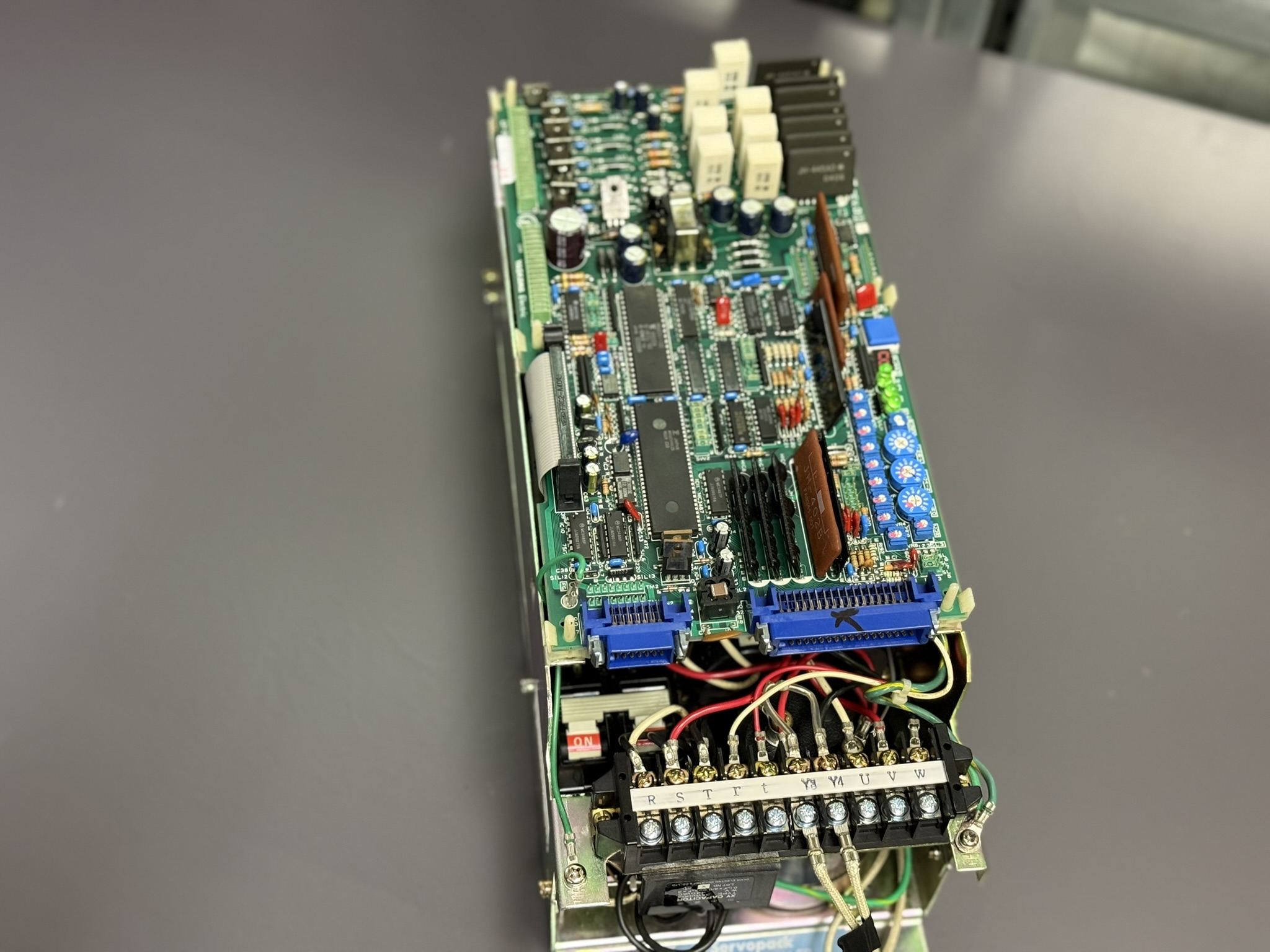 Unsere Techniker arbeiteten schrittweise mit Referenzwerten aus der Yaskawa-Dokumentation und verfolgten die Signale bis zur A/D-Stufe. Schließlich konnte der defekte Messpfad im Rückkopplungszweig instand gesetzt werden.